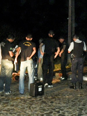 Policiais da DHPP e peritos foram ao local da ´desova ´ examinar os dois cadáveres (Foto: Naval Sarmento)